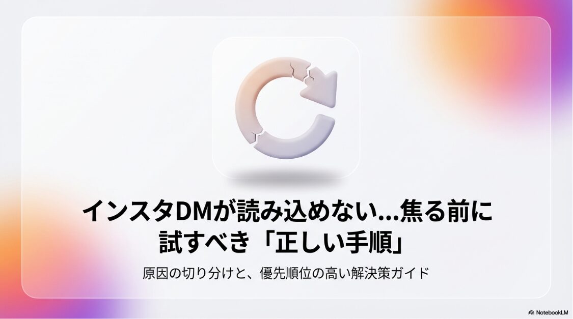インスタでDMが送れない人に送る方法|焦らず原因を切り分けること、エラー時は放置すること、フォロー外には丁寧な1通で待つことなど、DMトラブル解決の重要ポイントをまとめたチェックリスト。