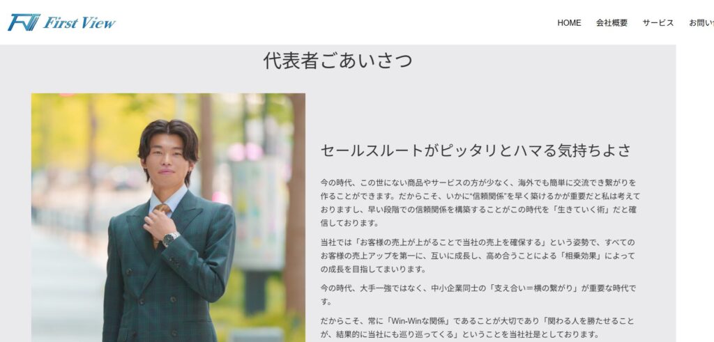 このように、株式会社ファーストビューは公式サイトで基本情報が明示され、複数の事業を展開している実体ある企業です。次のセクションでは、代表者の経歴や理念についてもう少し詳しく見ていきましょう。